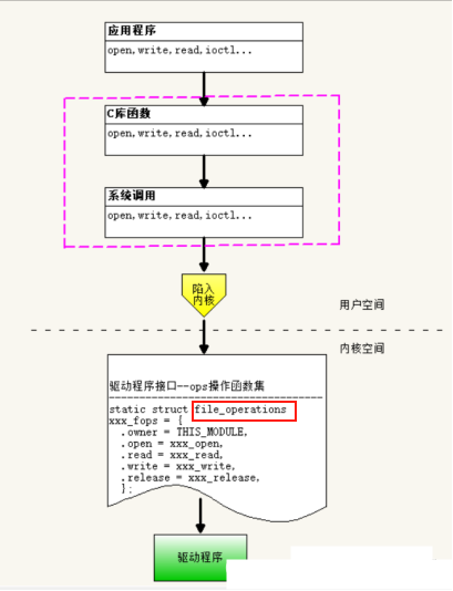 file_operations结构体告诉内核register_chrdev - 编写入口函数,安装驱动程序时,就会去调用这个入口函数